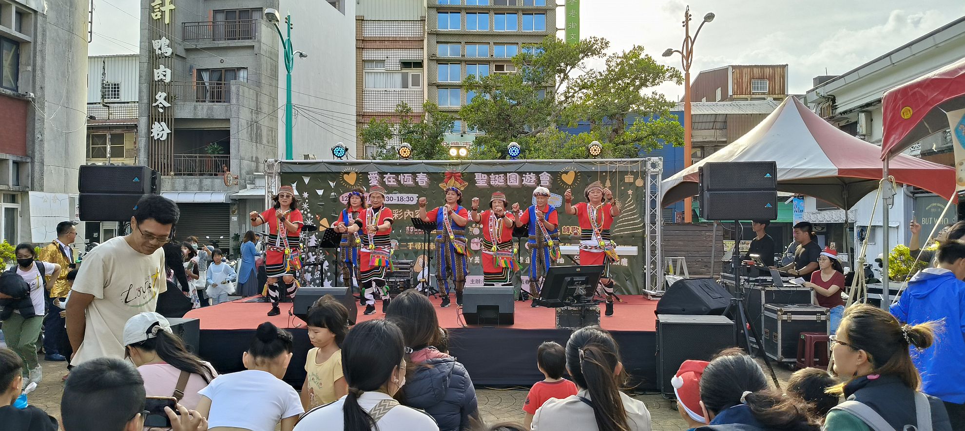 12月22日聖誕社區園遊會,教會全體總動員,各小組、單位各按各職:表演節目,輪流上陣;攤位、美食、禱告祝福小語、抽獎、遊戲挑戰、二手市場。雖然落山風(東北季風)、寒流齊起,卻不減我們的熱情,來賓遊走到處尋寶,氣氛熱鬧滿分,肢體同心同工見證服事,榮耀歸與神!