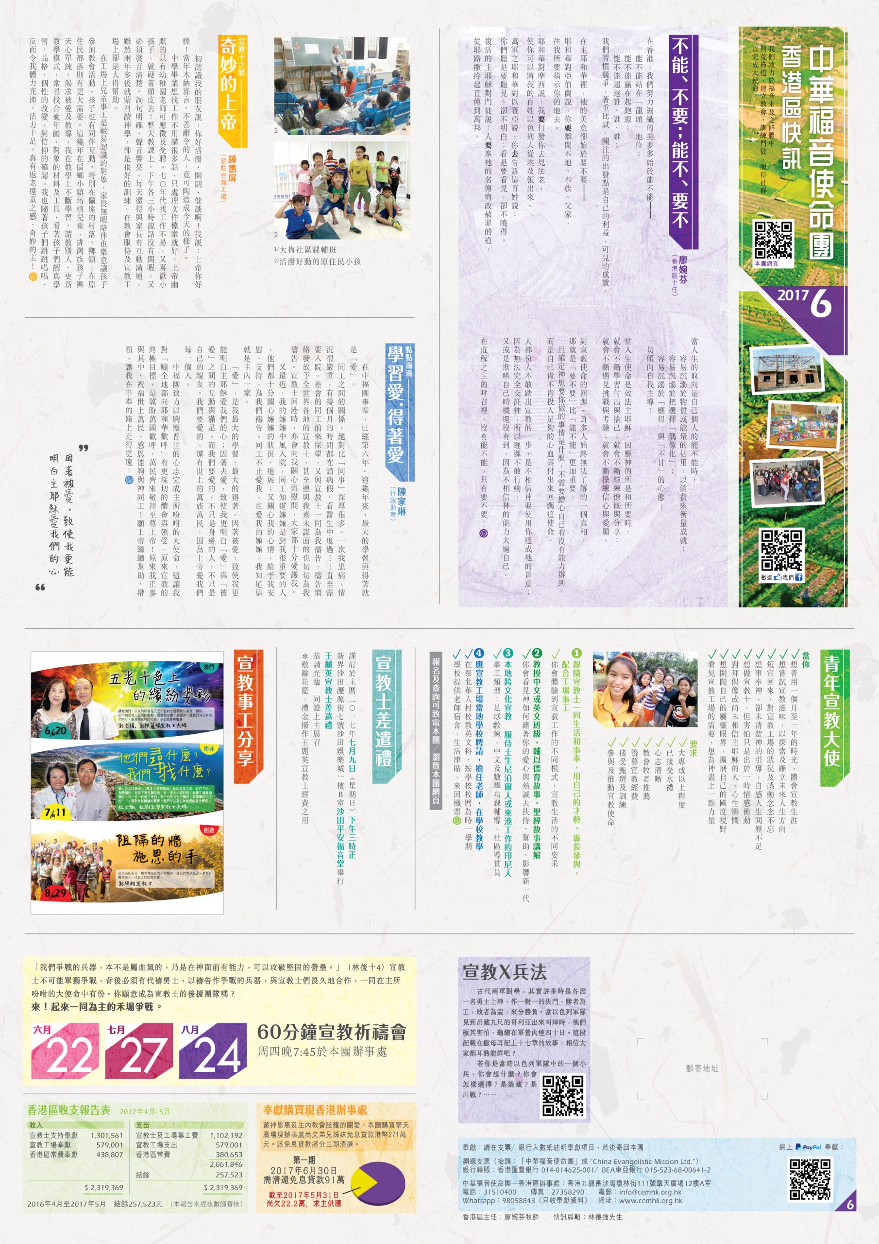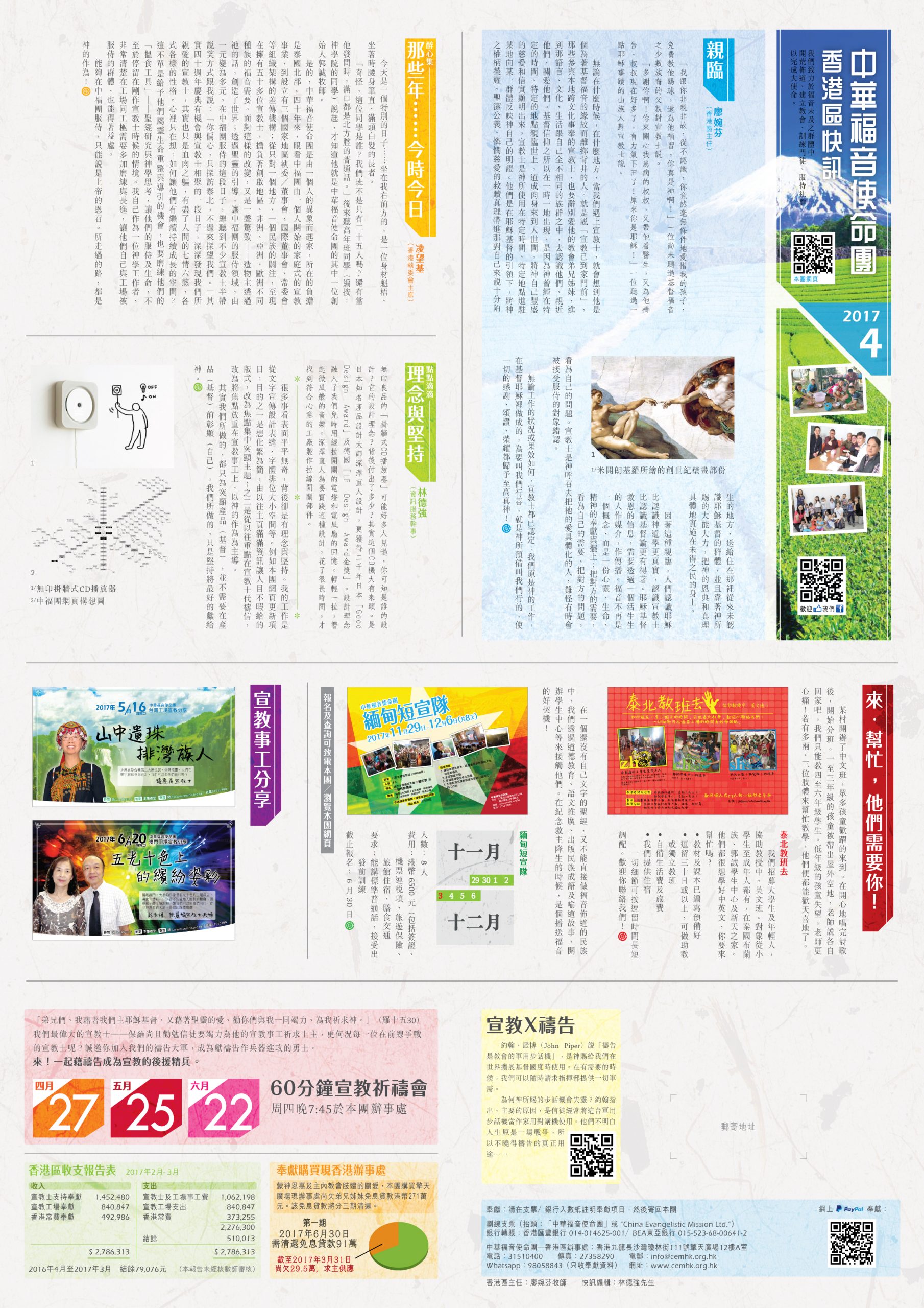 201120122013201420152016201720182019202020212022202320242025 香港區快訊 2017年12月 在水珠上孤兒心祢是怎樣弄的?在工場中的聖誕感恩與代求香港區財務報告 香港區快訊 2017年10月 請你來配對網絡媒體宣教的年代?奉獻?捐款?向無著鞋的人?賣鞋?!望聞問切感恩與代求香港區財務報告 香港區快訊 2017年8月 我的志願患難生忍耐新一頁撐不住?撐得住!感恩與代求香港區財務報告 香港區快訊 2017年6月 不能、不要;能不、要不奇妙的上帝學習愛‧得著愛背影感恩與代求香港區財務報告 香港區快訊 2017年4月 親臨那些年……今時今日理念與堅持一路走來感恩與代求香港區財務報告香港區快訊 2017年4月 香港區快訊 2017年2月 打破陳規開荒的艱辛與感恩八年求神在這世代動工感恩與代求香港區財務報告香港區快訊 2017年2月