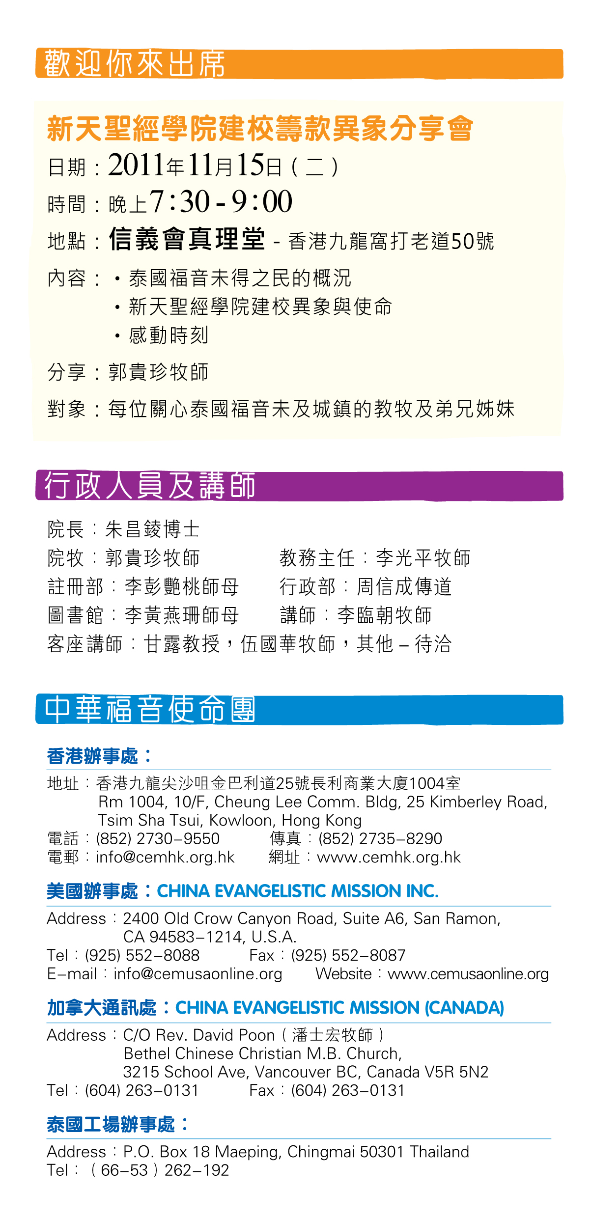泰國新天聖經學院院訊2011