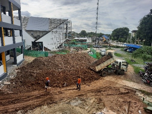 2.在A座、D座週圍的地面平整完成後,會開始禮堂與B座間的地面平整,並校園綠化種植。