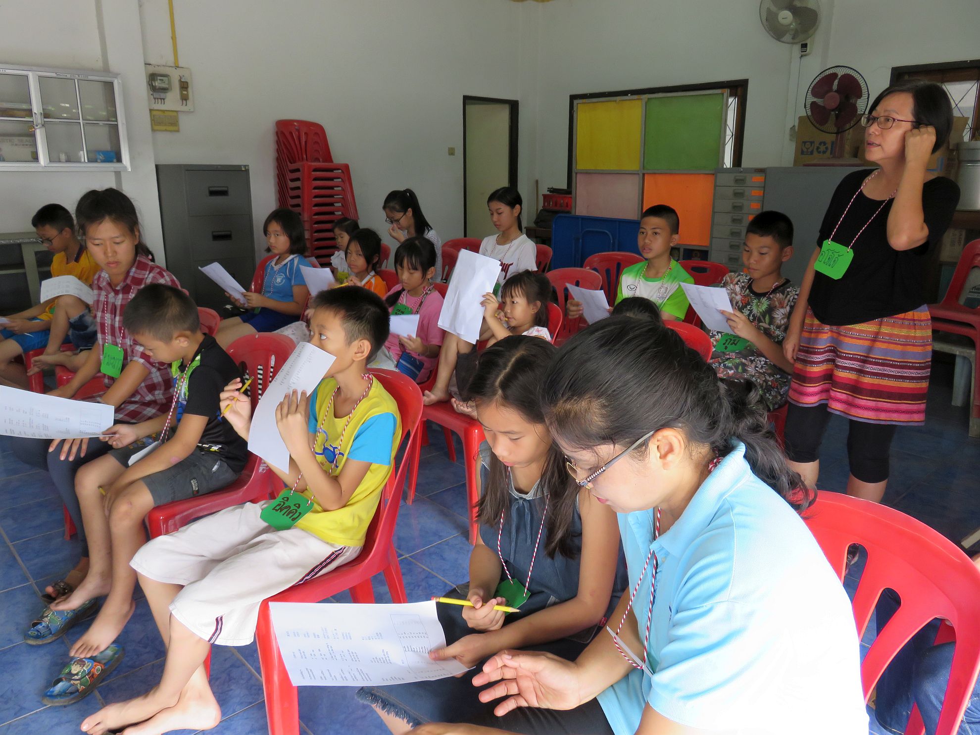 巴登村:我們得村長批准,借用一間村民會議廳辦中文補習班,透過教孩子學中文與家長建立關係;同時又逐家探訪派福音單張,接觸村民;並個別教婦女泰語識字班,有機會分享信仰。一位學泰語的婦女經歷了神的幫助。她兒子患病需要住醫院,本來要付醫藥及住院費用共一萬四千零八十銖。她沒能力付這款項,我們帶領她同心懇切向天父禱告,祈求神為她開一條出路。翌日這位姊妹到醫院見醫生時,醫生只收她費用八十銖,是何等神蹟奇事、何等驚喜,感謝神憐憫這個家庭。神用神蹟隨著我們,證實我們所傳的道。